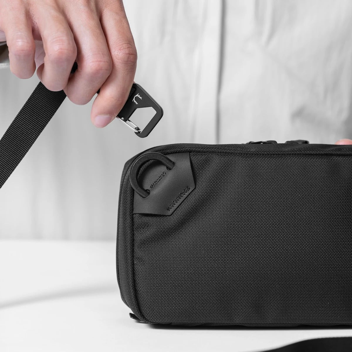 TKX is a tech-kit that doubles as a minimal sling. The magnetic front pocket is made for your phone and the accordion interior keeps your essentials organized. Snap on the carry strap and get going. Features Laser-Cut & Laser-Etched Hypalon theft-deterrent locking zipper pulls.