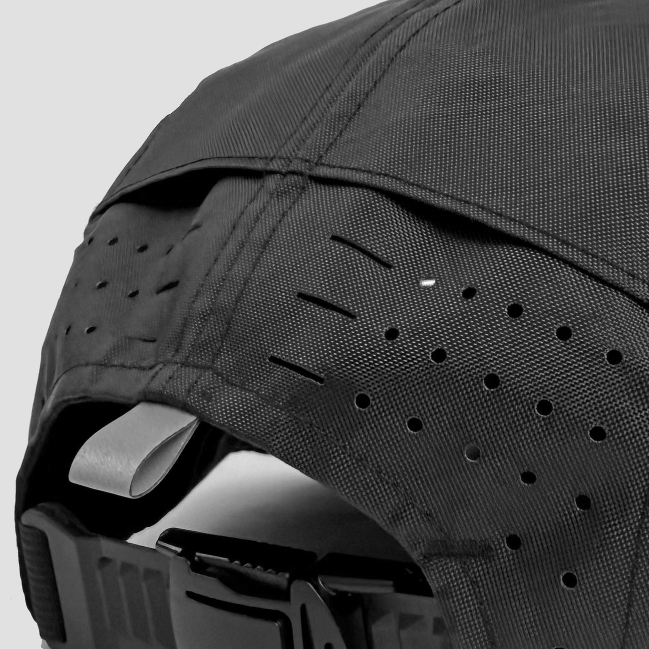 To this, we added laser-cut slits and vents to allow heat and moisture to escape, while providing protection against the elements. A mesh panel is also added in the inner forehead to create spacing for better air circulation.