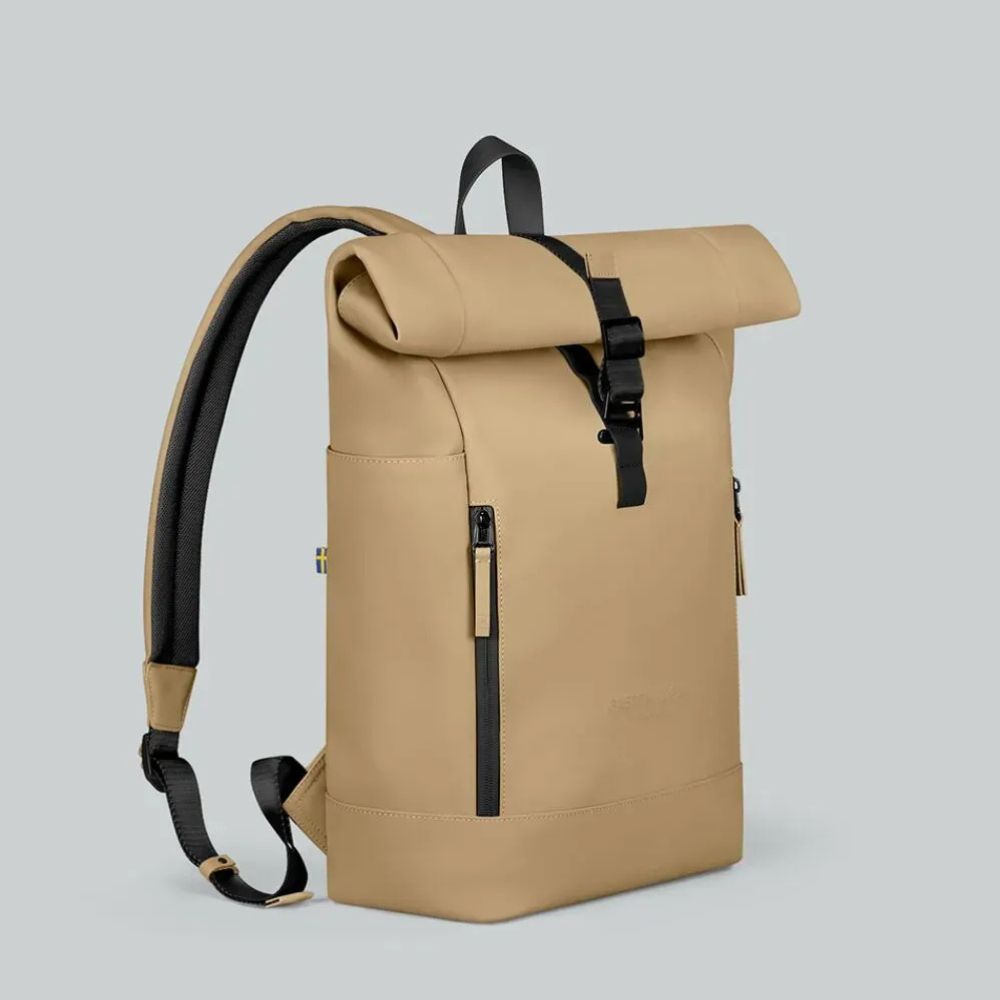 The Rullen backpack returns in a more planet-friendly material, smaller size, and with two new contemporary colour blocked designs. Crafted from waterproof PU, it features our signature roll-top, allowing you to adjust storage space. The sizeable main compartment easily fits all your belongings, including laptops up to 13", and has plenty of pockets for smaller essentials.