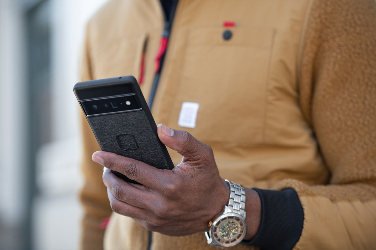 A Pixel phone case with the perfect balance of slimness, smart aesthetics, and protection, plus it brilliantly connects to the entire Peak Design Mobile Ecosystem. It's a phone case with zero compromise—and you don't have to take our word. The Wirecutter frankly admits "we don't say this often, but there aren't any flaws." Features a slim 2.4mm profile and protective rubberized bumper, all wrapped in beautiful nylon canvas shell. But what truly sets this case apart is the brilliant magnetic/mechanical lock that's built right into it. We call this mounting technology SlimLink™, and it's so fast and secure that it borders on magic. It can even make your Google Pixel device work with MagSafe chargers and accessories, however compatibility with all 3rd party chargers is not guaranteed. For non-supported phone models, try the Peak Design Universal Adapter.