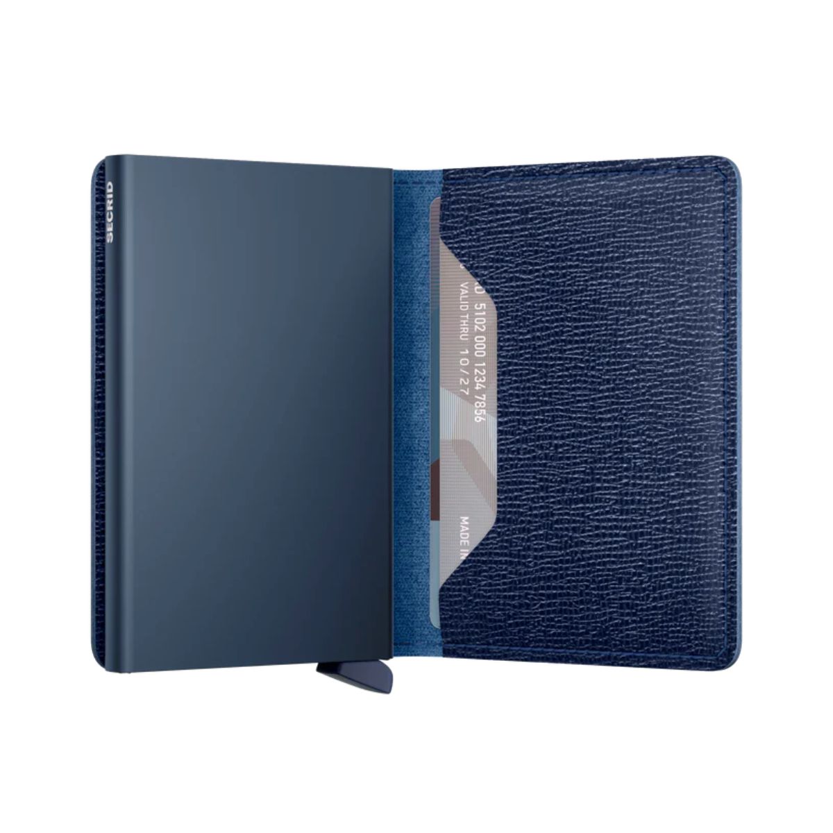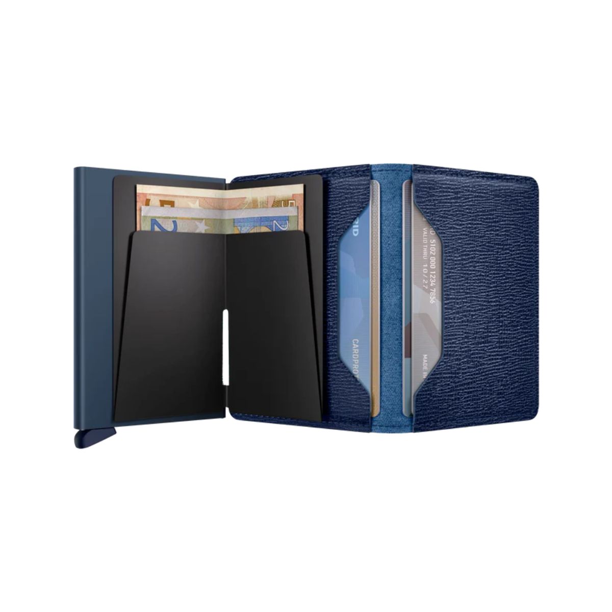 Its slim profile allows the Slimwallet to fit perfectly into any pocket. The open exterior is designed extra wide to accommodate cards, banknotes and receipts. The Cardprotector mechanism enables you to slide out cards with a simple motion, while the aluminium construction protects your cards from bending, breaking and unwanted wireless communication.