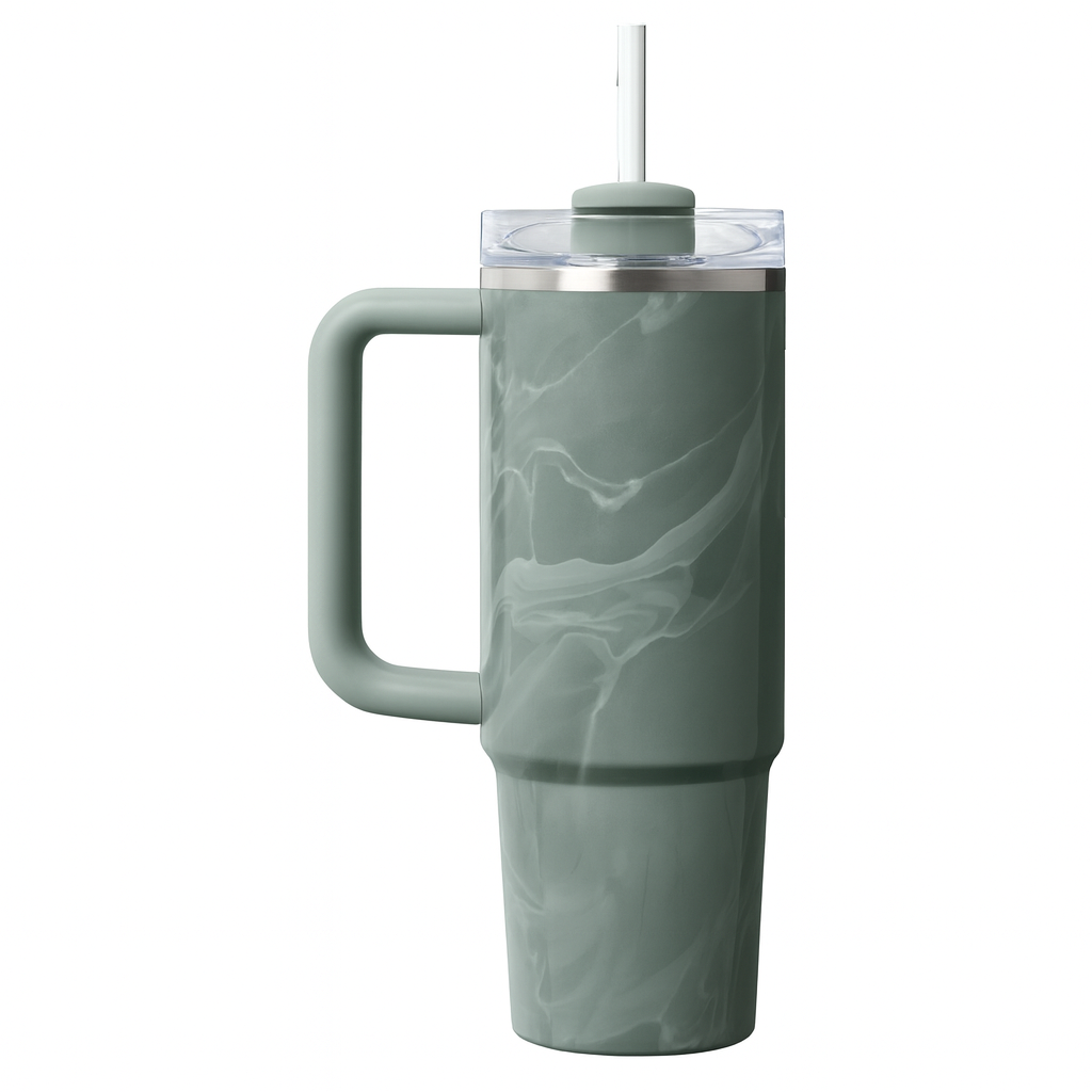 • Recycled stainless steel icon inside the tumbler indicates your Quencher is made from sustainable material