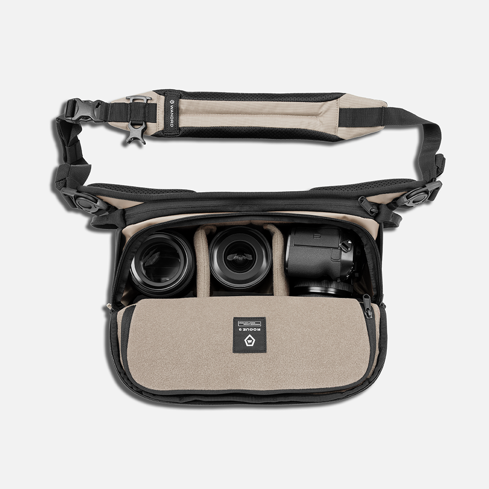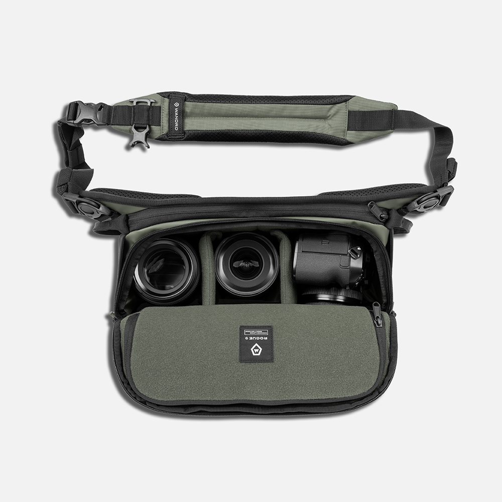 The ROGUE 9L is our largest, most capable sling—built for those who carry more and refuse to compromise. If you stay on the trails, color inside the lines, and aren’t obsessed with the marriage of style and function, this sling isn’t for you. With a reengineered shape, weatherproof materials, a patented laptop sleeve, and external attachments for a water bottle, tripod, jacket, and more, it’s designed to haul your everyday kit (and then some) while staying comfortable, organized, and ready for anything. The ROGUE 9L was deliberately engineered and obsessively tested around fitting a wider array of cameras - including the Fuji GFX 100S w/ 50mm f/3.5 + 110mm f/2 + 20-35mm f/4, Nikon Z8 w/ 24-70mm f/2.8 + 14-24mm f/2.8, Canon R5 w/ 70-200mm f/2.8L + 24-70mm f/2.8L.